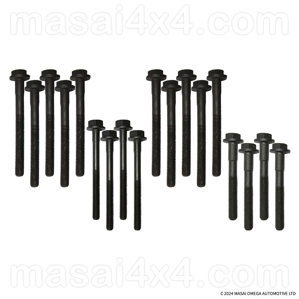 Masai 4x4 offers a comprehensive range of Head Bolt Sets designed to ensure the integrity and performance of Land Rover Defender engines from 1986 to 2007. These high-quality sets are tailored to specific engine models, providing a precise fit and reliable sealing for optimal engine function.